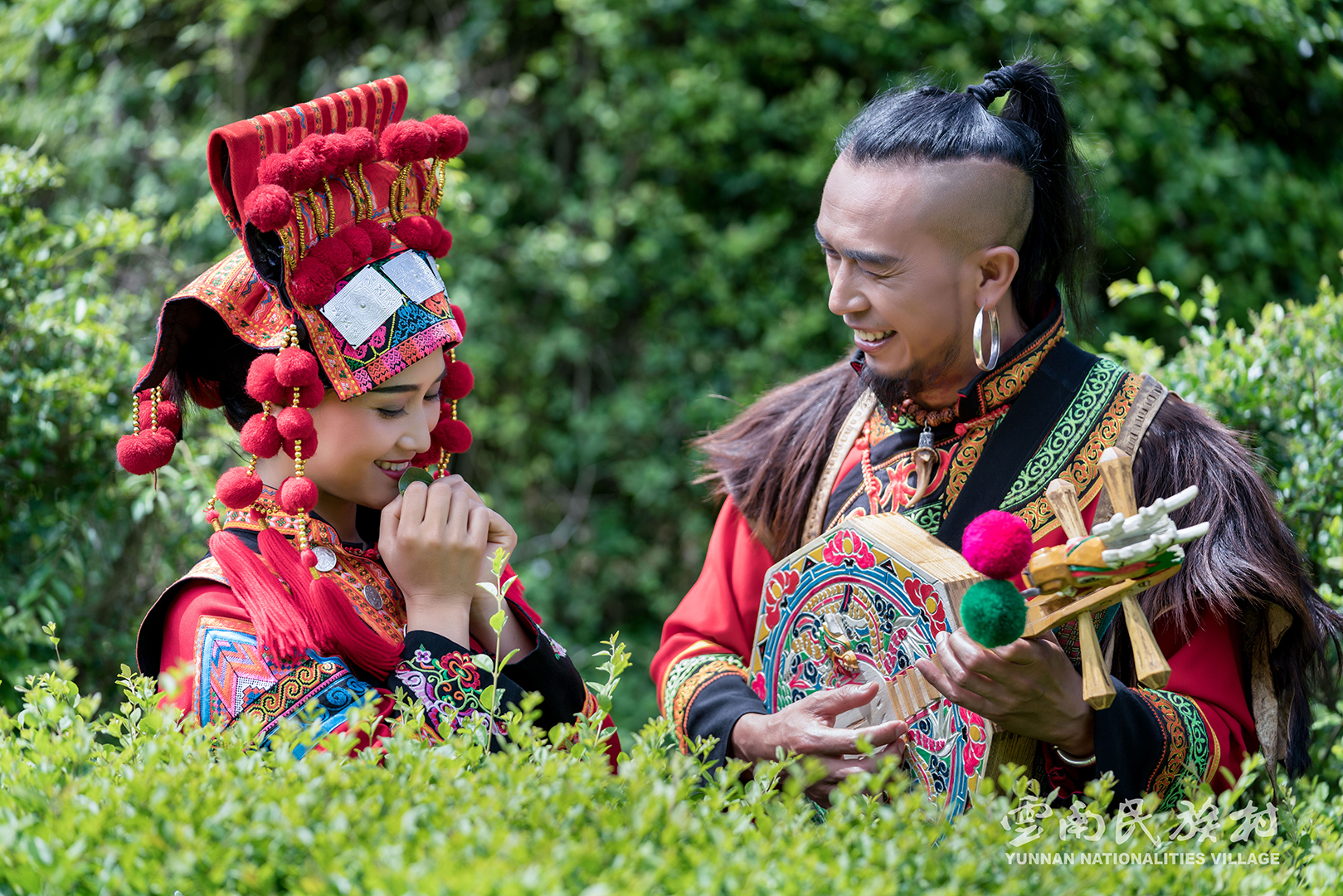彝族在云南境內(nèi)約471萬人,是省內(nèi)人口最多、分布最廣的少數(shù)民族,主要聚居在金沙江、元江流域和哀牢山、無量山腹地。彝族是一個能歌善舞的民族,民間打歌、跳樂之風(fēng)盛行,大三弦、跌腳舞久負盛名。火把節(jié)是彝族最具特色的民族節(jié)日。彝族村占地50余畝,三虎浮雕墻與虎頭內(nèi)祖師形象表現(xiàn)了彝族虎鷹文化。太陽歷廣場圖騰柱上有太陽、虎、火和八卦圖形象,周圍環(huán)繞著10個朝向不同的月球造型,外圓周有12生肖石雕。依山而建的“...